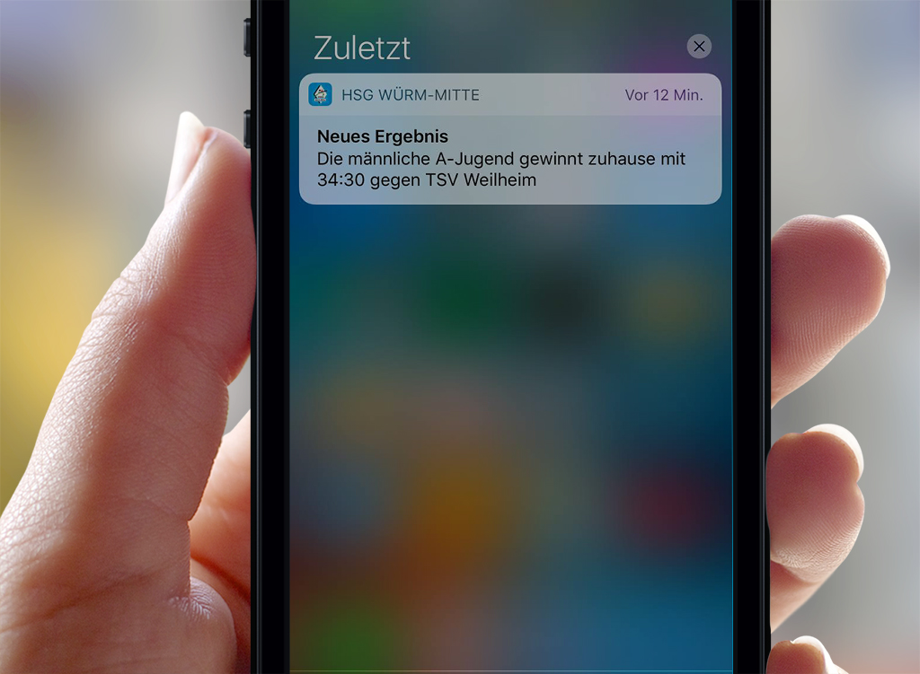 Sobald das Ergebnis eines Spiels im jeweiligen Ergebnissystem (fussball.de, SIS-Handball, NuLiga, volley.de, …) hinterlegt wird, kannst Du es bereits kurze Zeit später von der App aus abrufen. So hast Du die Ergebnisse des aktuellen Spieltages auch von unterwegs aus immer im Blick.